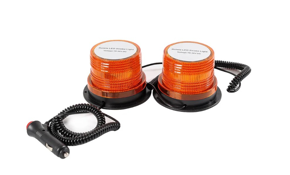 Маячок проблесковый светод. 10-30V (жел.) (строб.119*83) ДВОЙНОЙ от прикуривателя 12в KR-4070